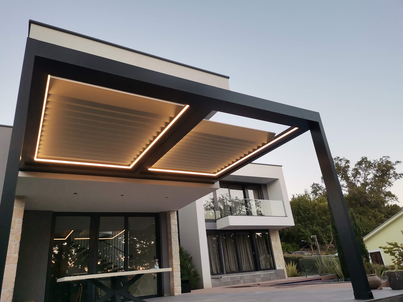 Bioklimatika je spoj prirode i arhitekture. Temelji se na pametnom korištenju sunca, svjetla, vjetra i topline, a naši sustavi s rotirajućim i putujućim lamelama omogućuju potpunu kontrolu svjetla i ventilacije, čineći prostor ugodnim tijekom cijele godine uz što manju potrošnju energije.